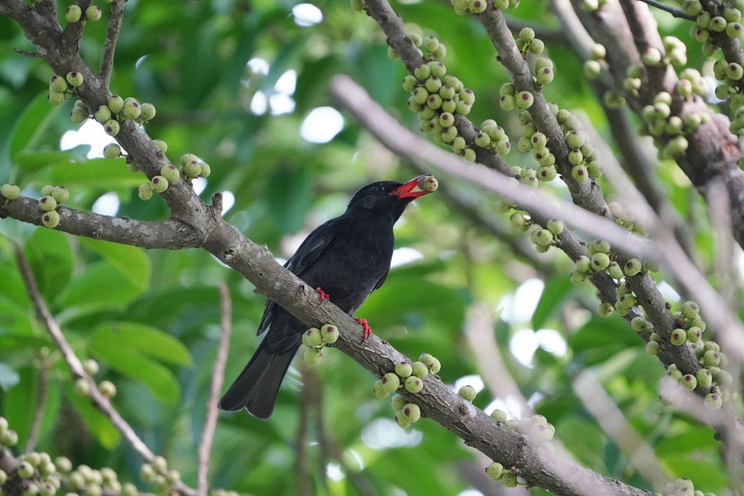 白腰鵲鴝喜悅吃到雀榕果實