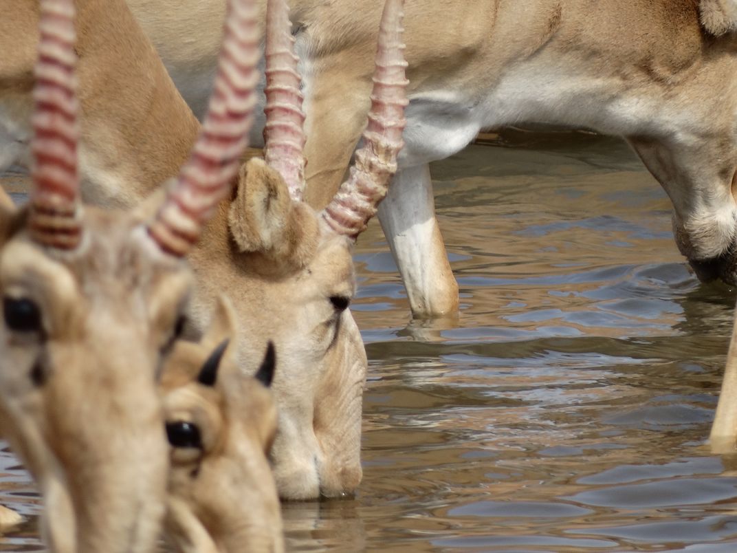 Сайгаки на водопое,заповедник Черные земли, республика Калмыкия, Россия