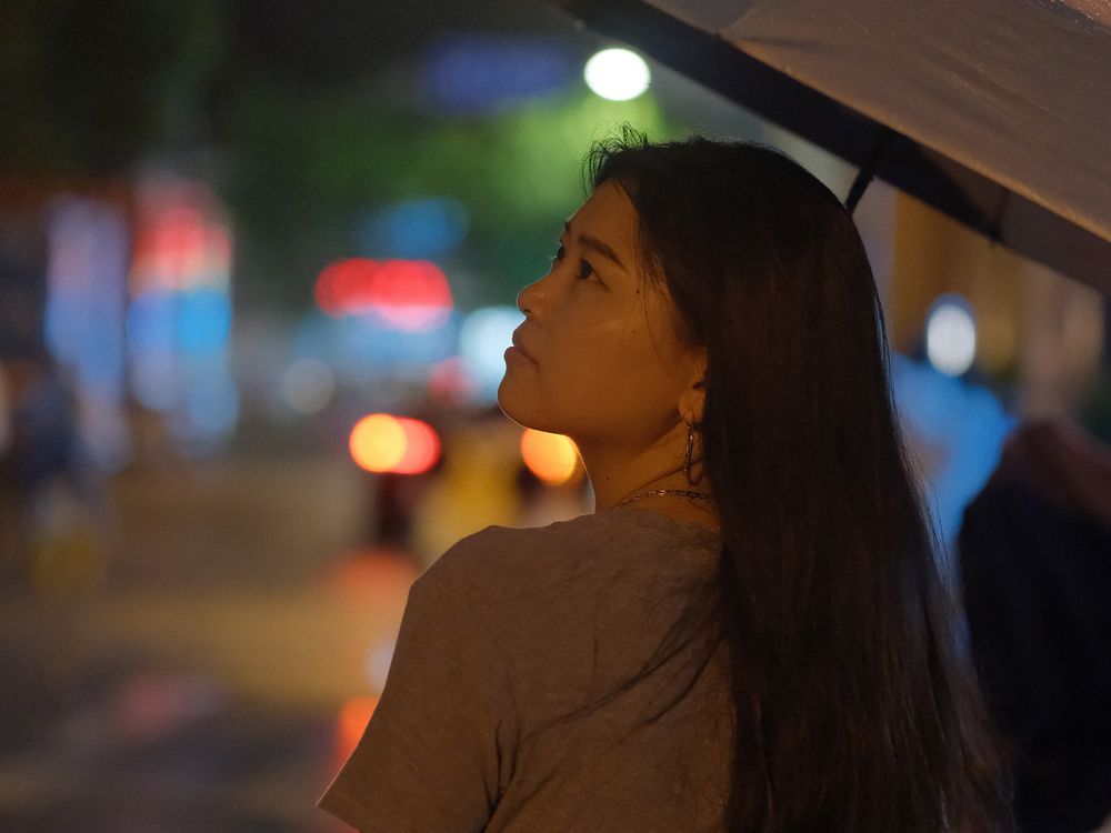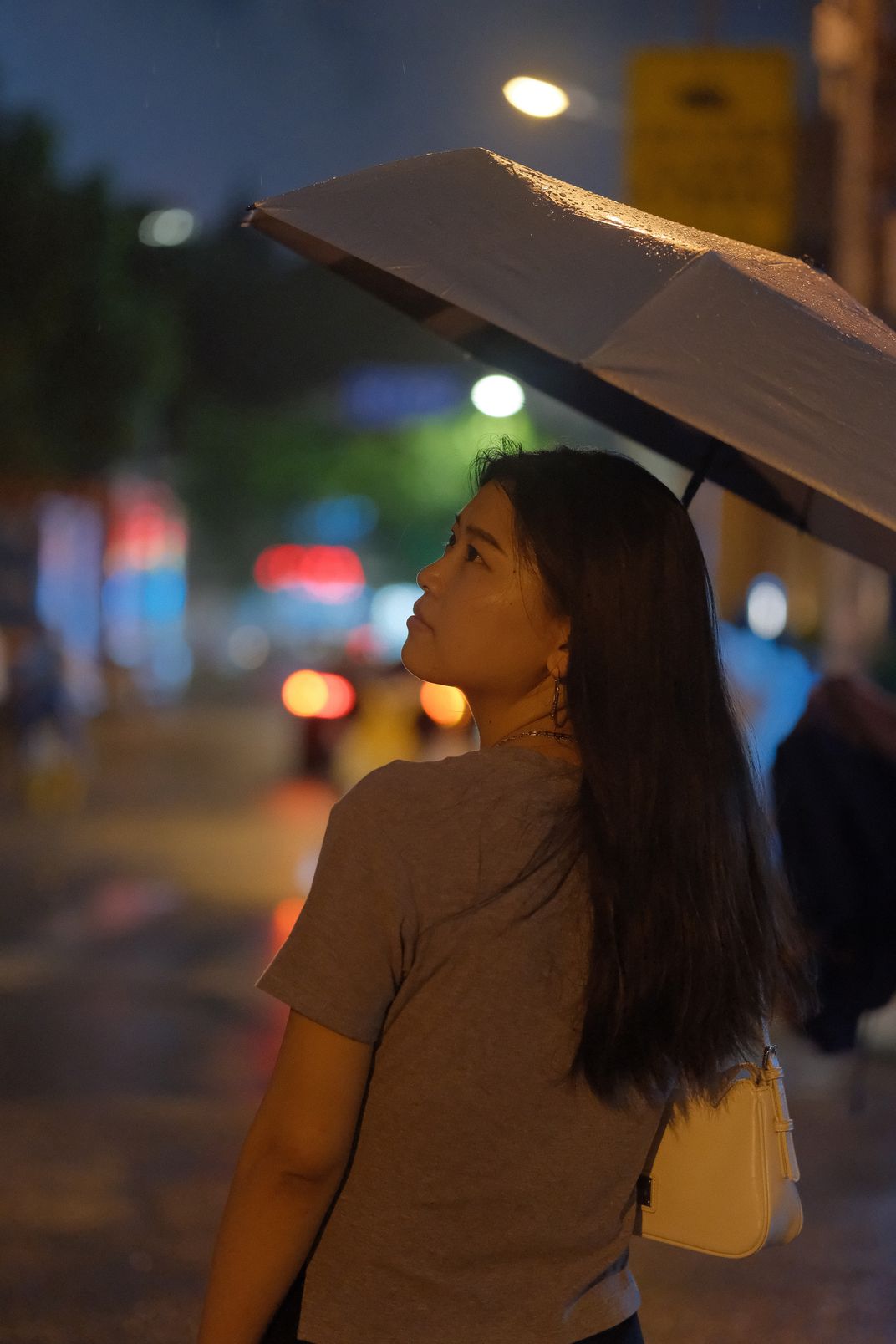 上海的外滩旁边的街道,这是游客从地铁下车去外滩的必经之路,我与姐姐在街道上漫步,突然间天空下起了小雨,人 灯光与街道融为了一幅美丽的画卷,我叫了姐姐一声,姐姐突然一回头,我捕捉到了这美丽的瞬间。
