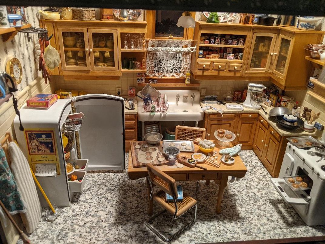 An extraordinarily detailed miniature diorama of a 1940s Chinatown kitchen, created by 81-year-old self-taught Frank Wong. A heart-breaking, evocative, tender, and romantic model of the Chinatown of his youth. A real testament to one man's sense of community, memory and preservation of his legacy. These rare portals into his romanticized and filtered memories became a documentary short film in 2016 entitled, Forever, Chinatown. This kitchen is one of 7 dioramas that Frank made, taking him some decades for all. Fascinating glimpses of a different era.