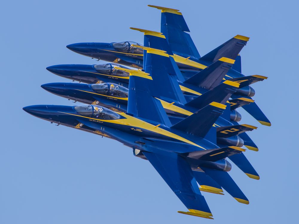 Four Blue angels in side by side formation at Homecoming. Veteran’s Day 2017, Pensacola, Florida.