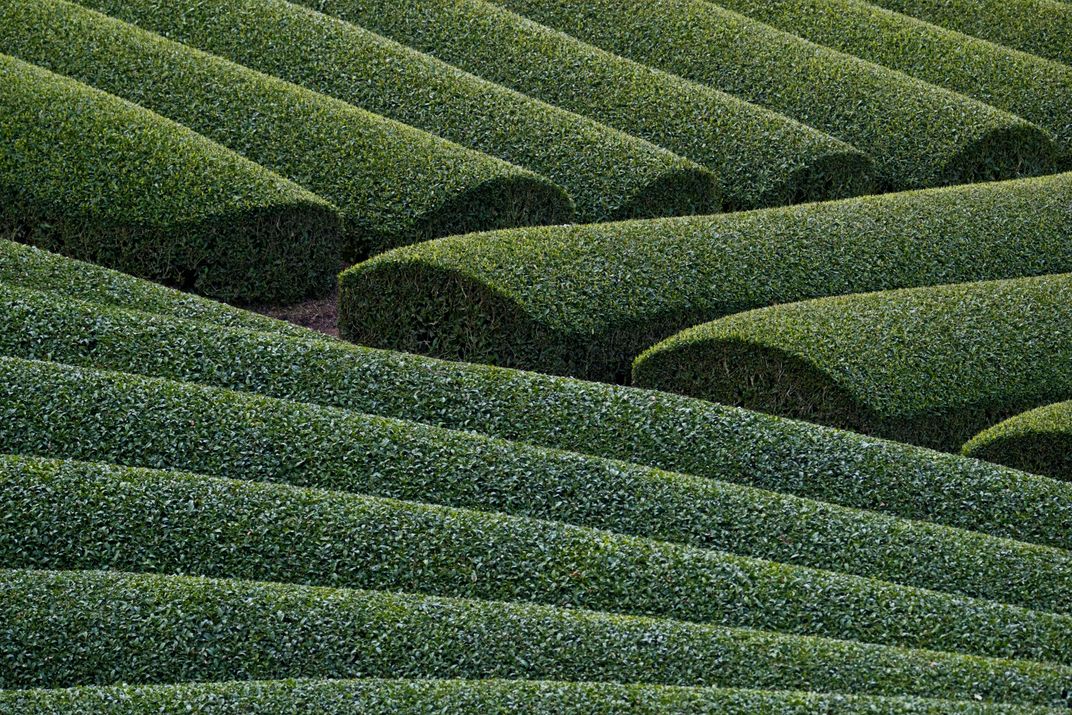 In the Japanese town of Wazuka, not far away from Kyoto, the green tea plantations are the main business of the local. The farmers take care meticulously for the plantations, resulting in amazing geometrical shapes as you can see and appreciate in the photo.