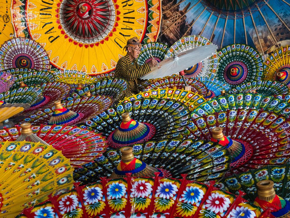 this man has painted umbrellas for 50 years and can do 20 in a day. He is a testament to the amazing craft that can be built over time.