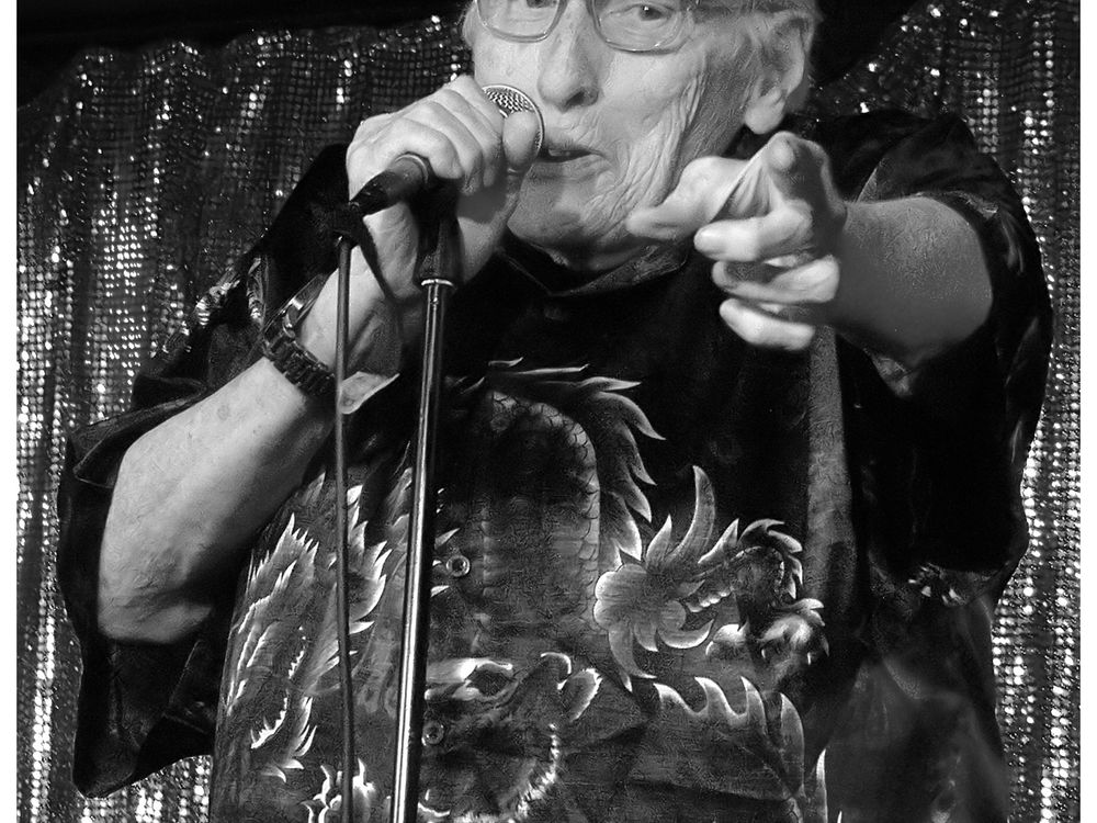 8s years old blues singer Chris Farlowe points into the audience