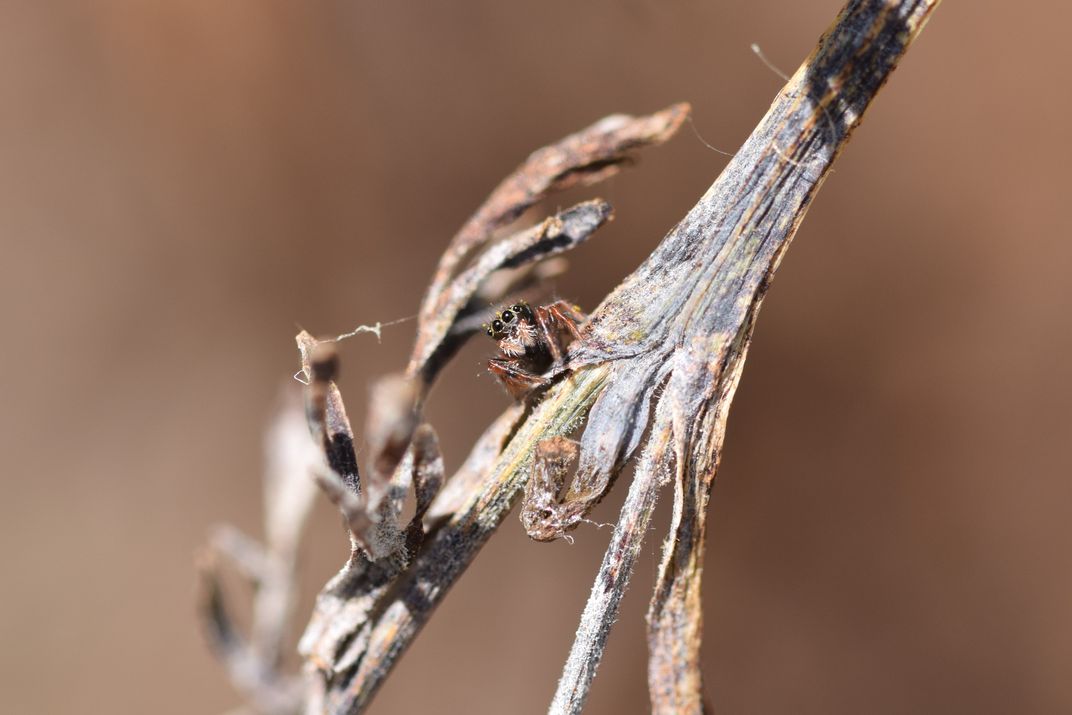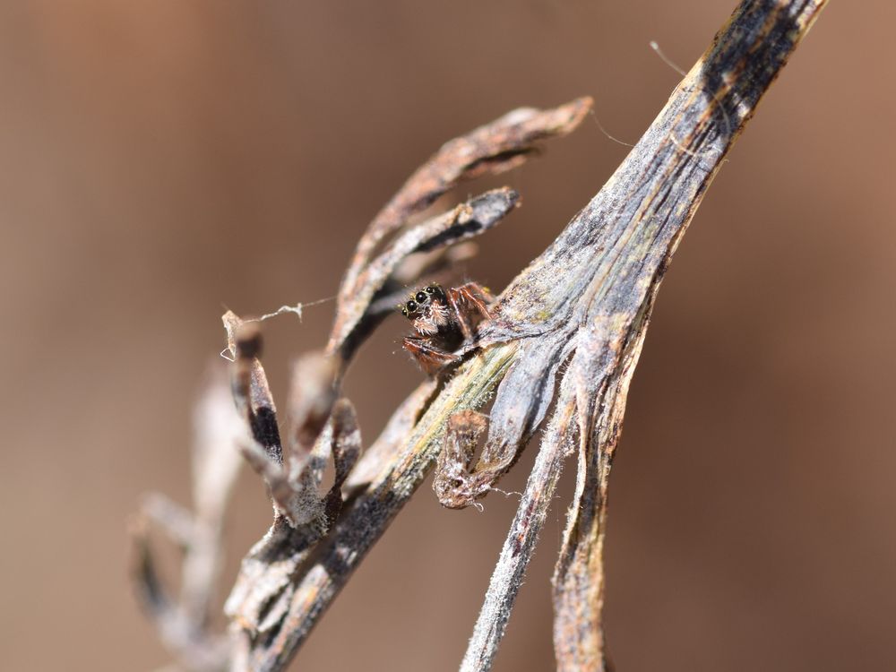 A hopeful-looking jumping spider in a Bay Area garden. This little fellow seemed very preoccupied with the view from its vantage point.