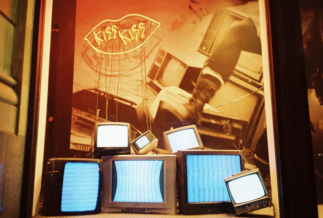 I saw these curious TVs in a showcase along my walk in Manhattan. I couldn't tell you what it was about, perhaps something to do with NYU. Not until after the film was developed had I noticed the TV screens had turned to these weird shapes and designs.