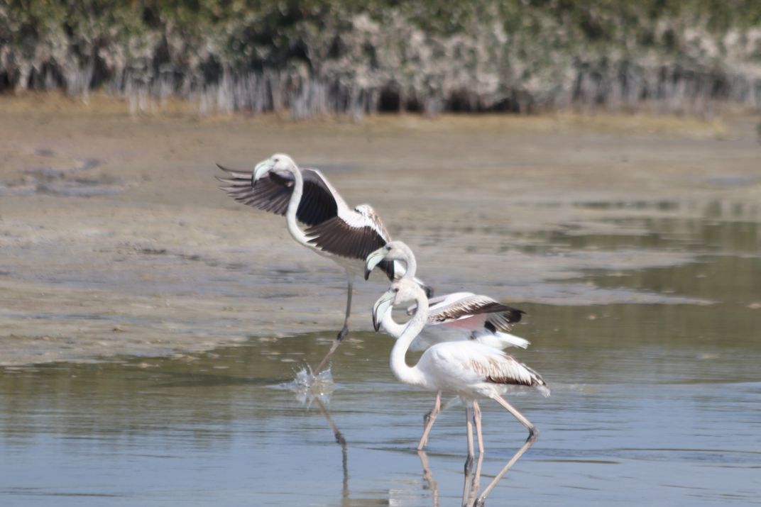 The photo captured from Tarut Mangrove Island Dammam. Based on information about flamingos in the region, the Greater Flamingos usually migrate to the coasts of Saudi Arabia, including areas in the Arabian Gulf near Tarut Island, during the winter months (roughly November to March). They are attracted by the warm climate and rich feeding grounds.