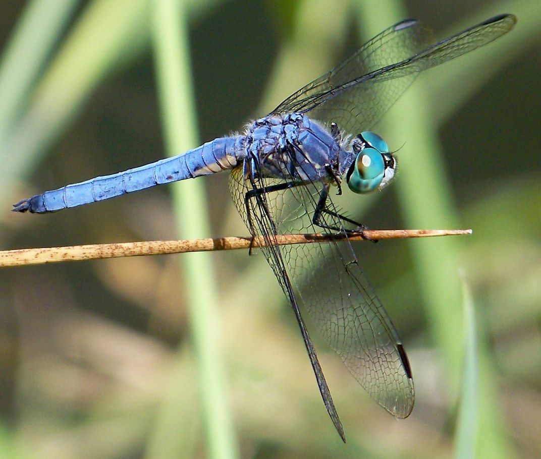 A beautiful blue dragonfly. One of many flying over the waters of Long Bar Pond, that sits adjacent to the Feather River in Oroville, CA. I love his or her pastel blue eyes.