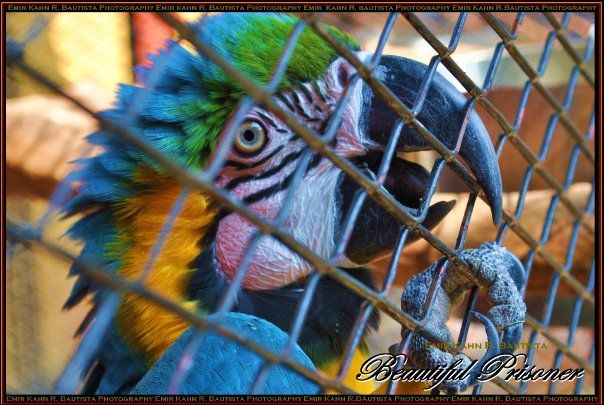 A Beautiful Prisoner. This was taken at the garden of my friend. A collection of his favorite birds ( Parrot ) A message to lets free this creatures for we do not own them.
