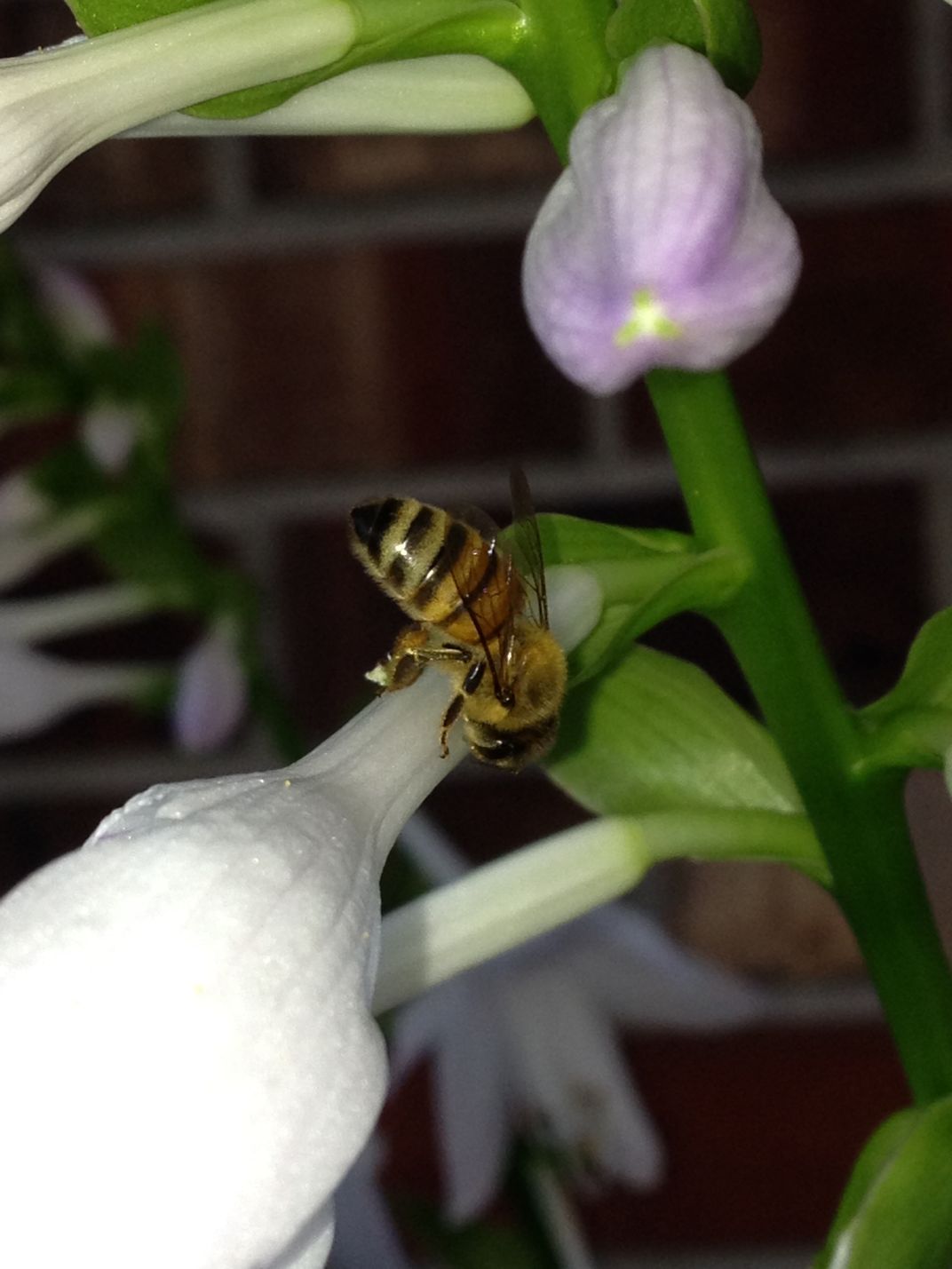 A bee on a flower outside the front of my house.