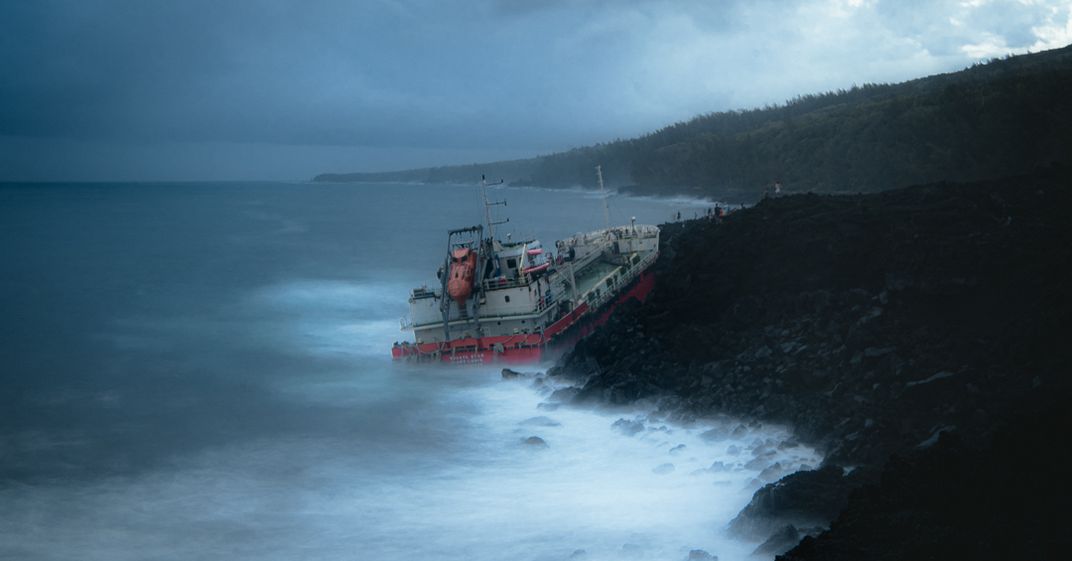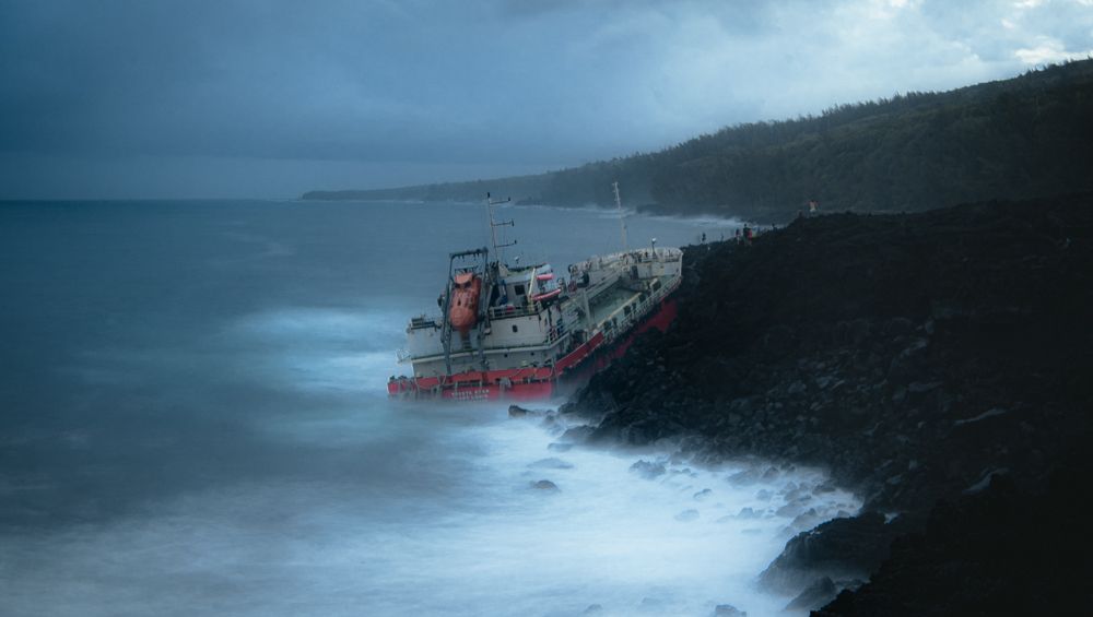 A boat crashed on the rocks in La Réunion, after the cyclone.