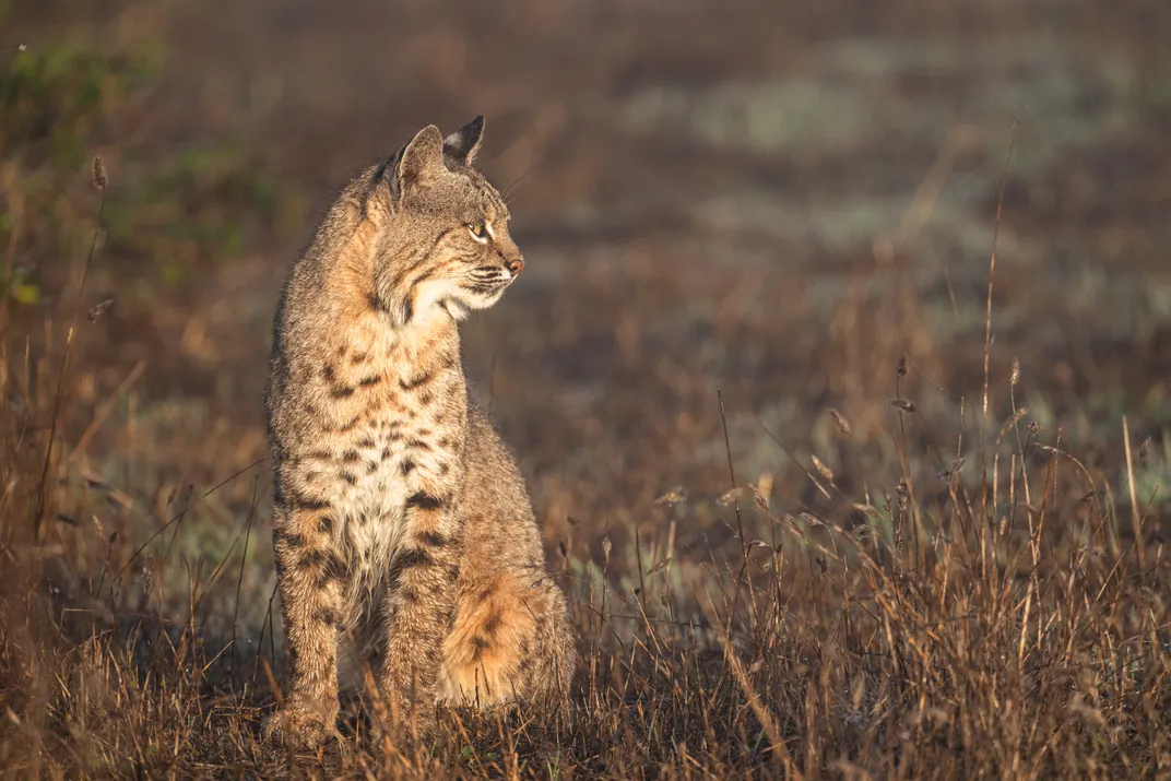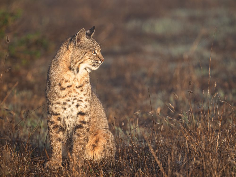 This bobcat was beginning a morning hunt and stopped to look into the sun as the fog dissipated.