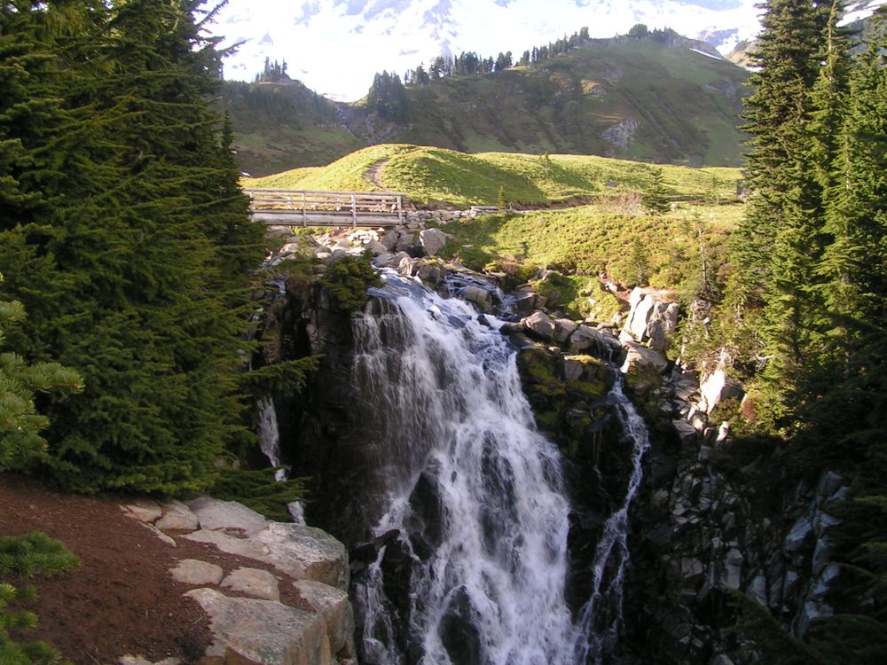 Waterfall of Melted Mountain Snow, Mt. Rainier, WA.