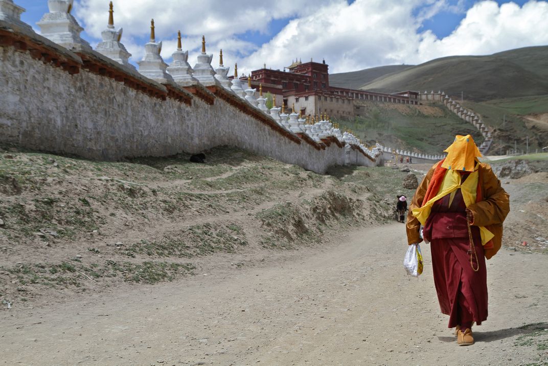 A Buddhist Monk Walks from Temple, Litang, Sichuan