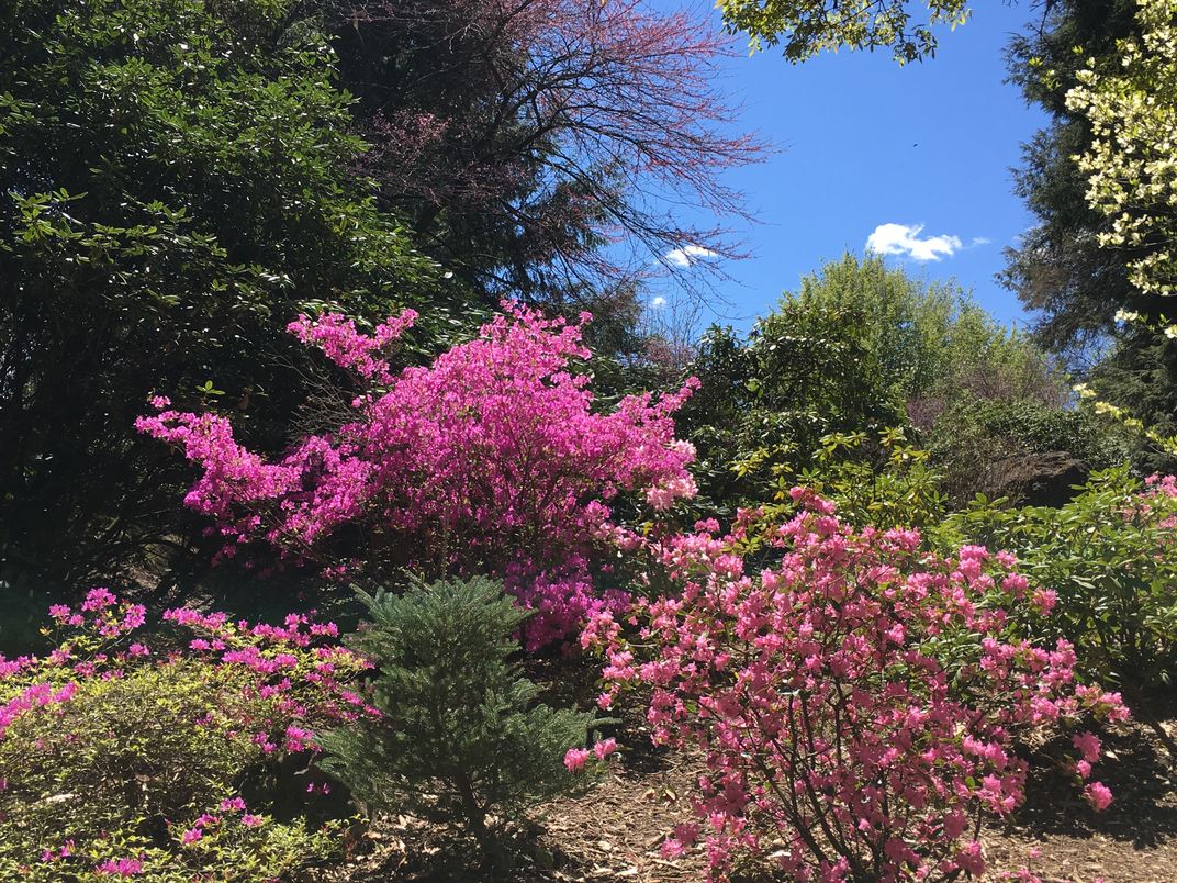 Highland Park in Rochester NY is famous for its lilac trees. But I walked its paths this year in search of other springtime glory, and found this configuration irresistible.