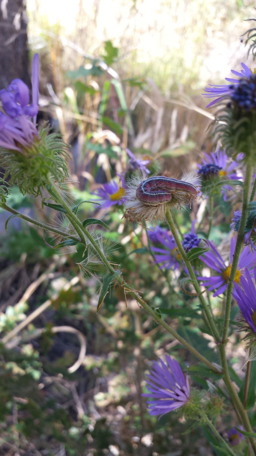 Hidden in a flower patch tucked deep in the forest, a single caterpillar laid on a flower.