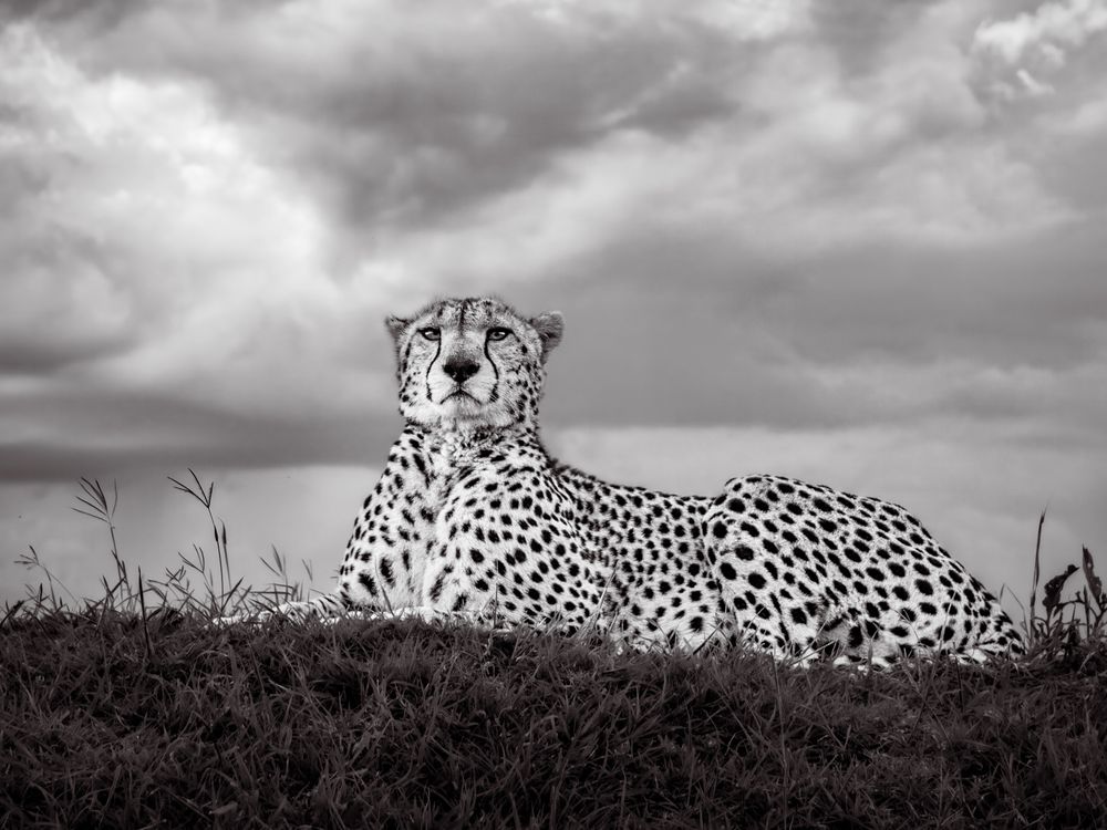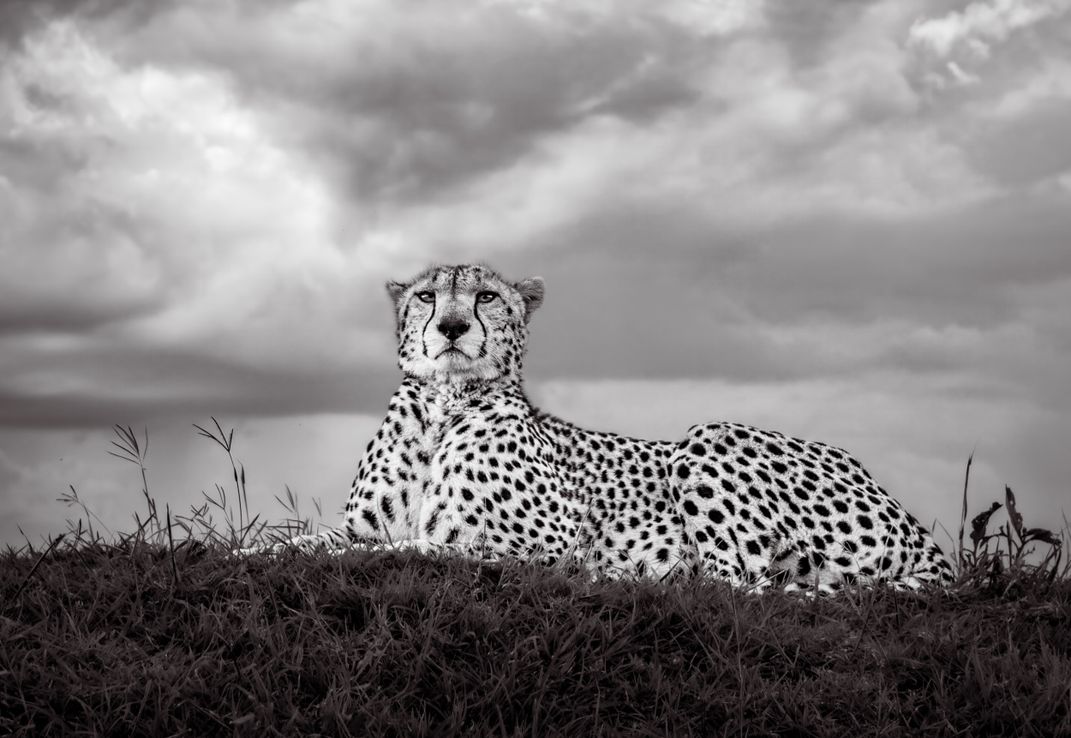 Beneath an endless sky, a lone cheetah sits still — watching the world around it. Like a quiet sentinel of the wild, it sits unmoved and deeply at ease in a world that never stops moving.
