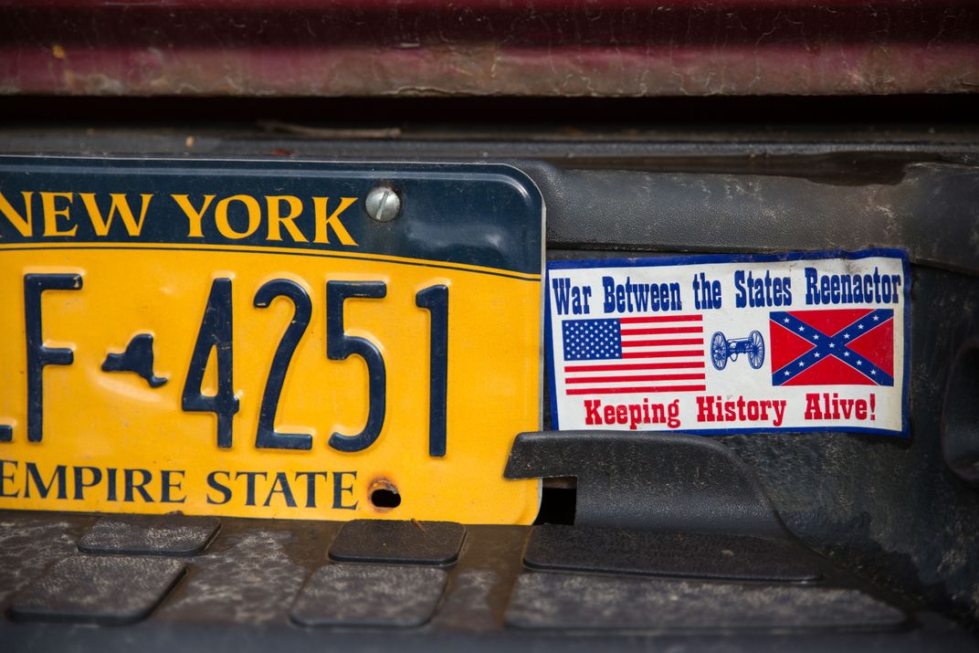 This bumper sticker was on the back of a parked car at an American Civil War reenactment in upstate New York. The language of the sticker reminds viewers that while the war ended 150 years ago, its contempory implications are ongoing.