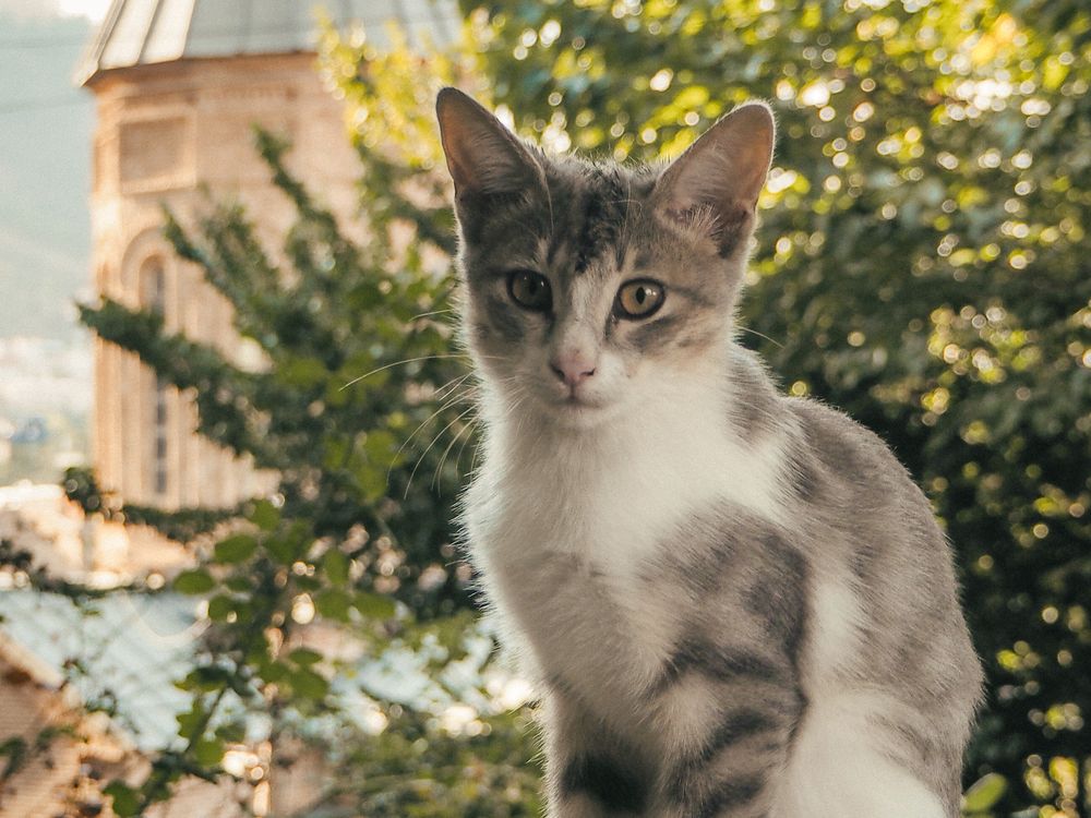 There are many cats in Georgia, and I came across a very clever stray kitten. When I saw him, I started calling him into the frame, telling him to sit still and look at me. Amazingly, he actually stayed put and looked straight at me, as if he understood every word!
