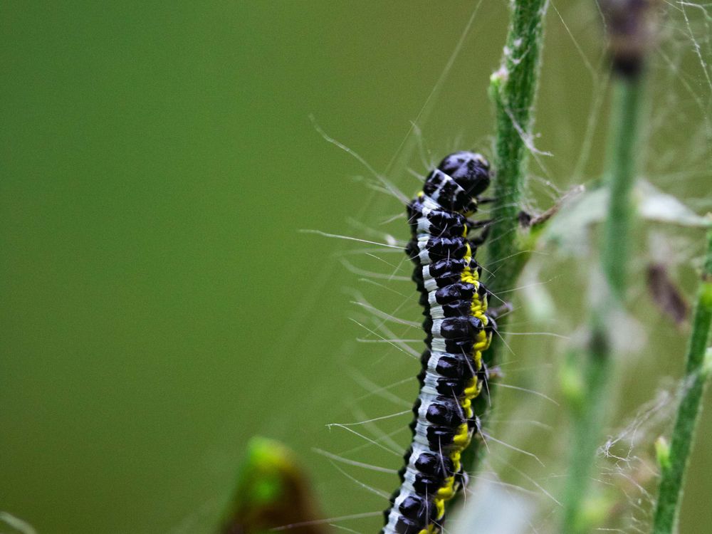 The picture is showing caterpillar climbing the flower very assertively because it wants to become a beautiful butterfly.