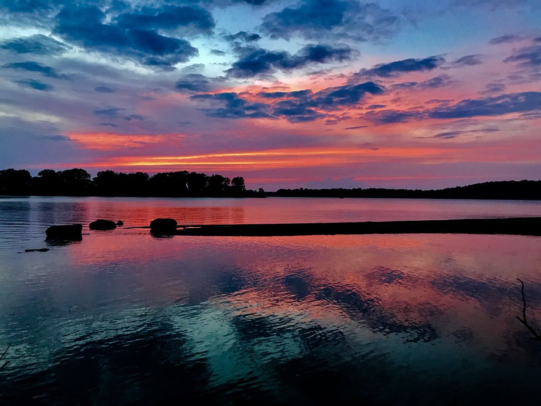 A colorful sunset at Lake Keystone.