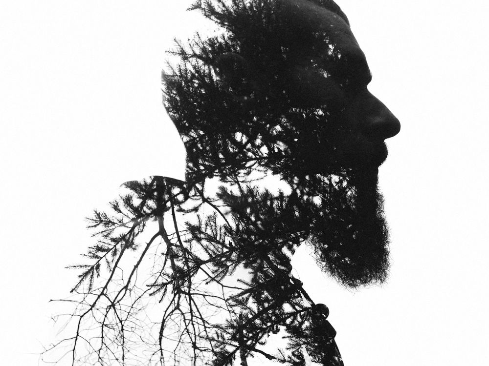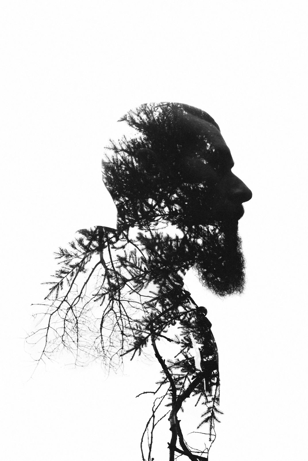 This is a double exposure of my friend Alexander, taken on one of our walks through a swampy Siberian forest.