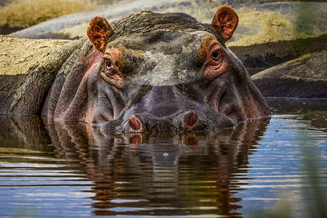 This is a powerful and charming face that clearly shows the hippopotamus's sleeping posture.