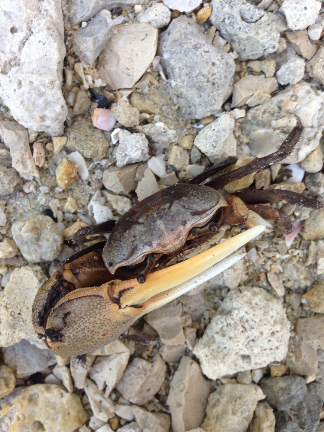 The photo is of a male Fiddler Crab taking a defensive posture because he was threatened of my phone.