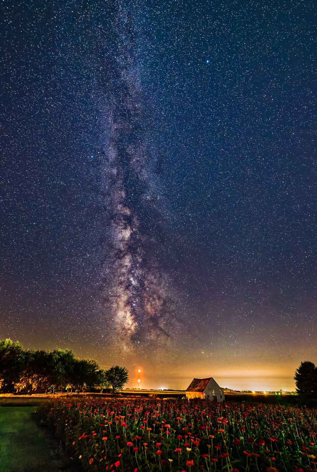 A Field of Zinnias Under the Milky Way