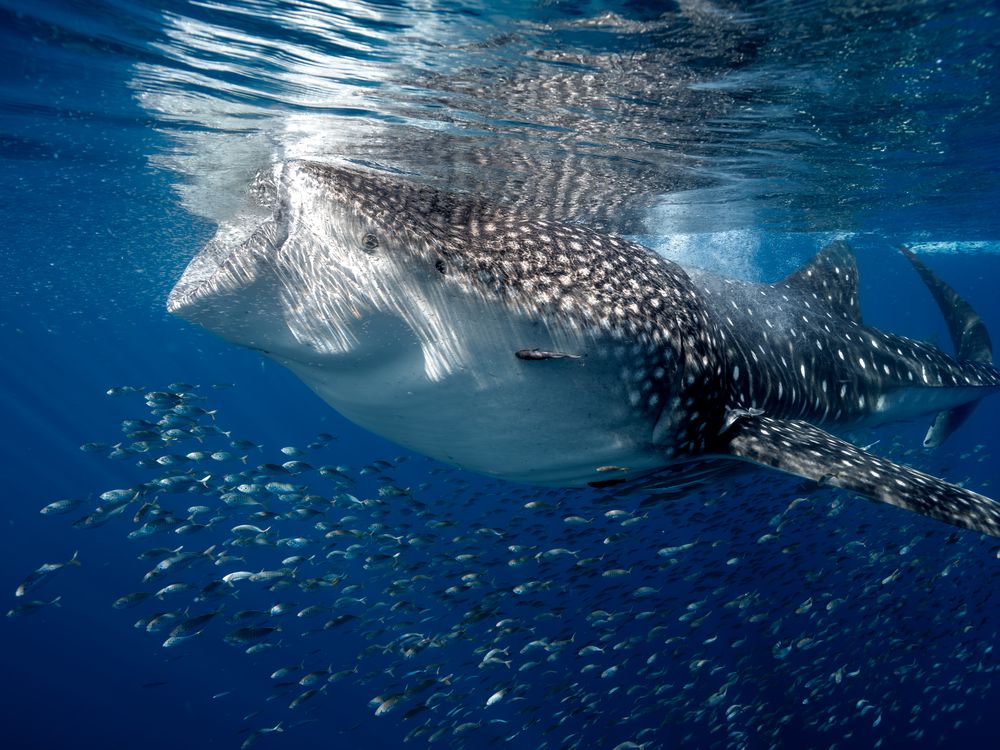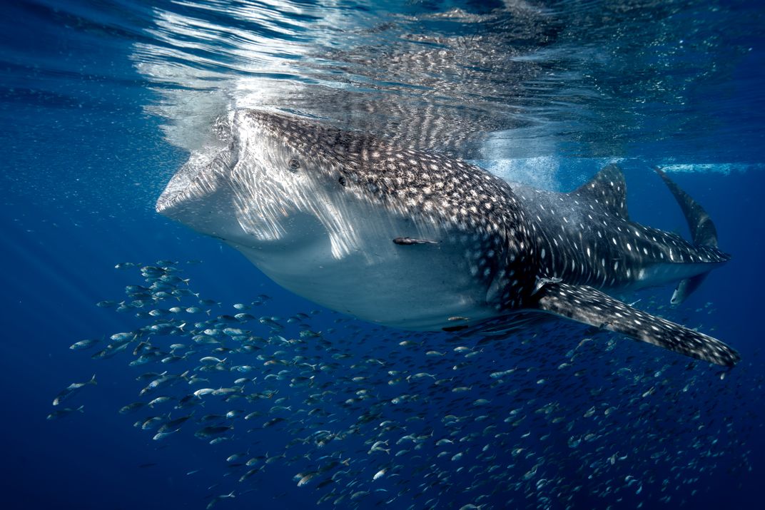 Ironically, the biggest fish in the sea is only interested in the smallest. As filter feeders, Whale Sharks swim with their mouths wide open, filtering huge amounts of water using their gill rakers to net plankton and other microorganisms. Whilst feeding during the day at the surface is usually passive, rarely prey such as krill gather in large swarms on the surface, and Whale Sharks charge chaotically through the krill balls at speed with surprising agility & speed.