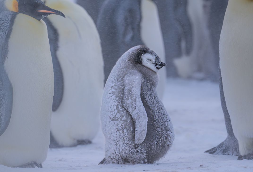 This image shows how harsh the condition is where emperor penguins live. But also shows that emperor penguins can survive at this extreme cold windy condition. Their feather and skin guard them. The parents had to work hard to get enough food to feed the chick well. This particular chick was really spoiled.
