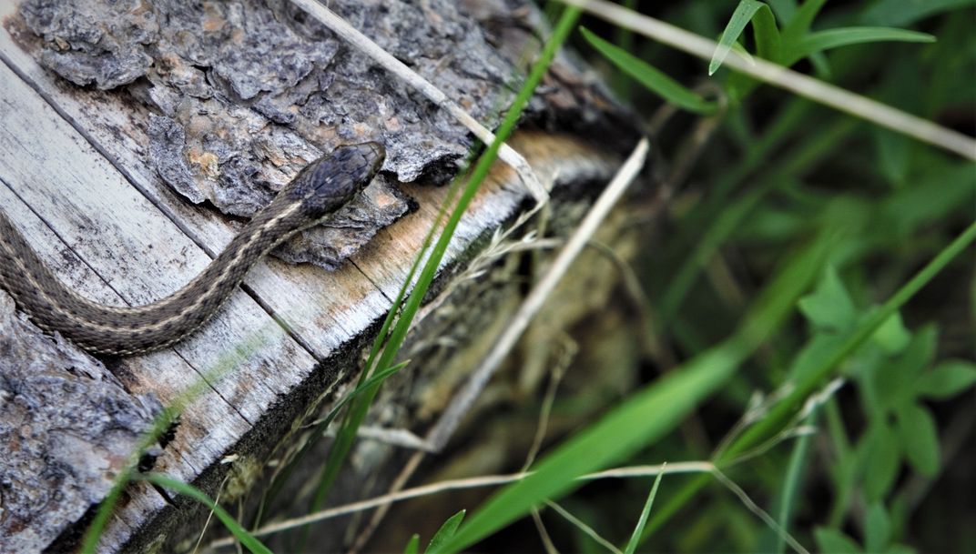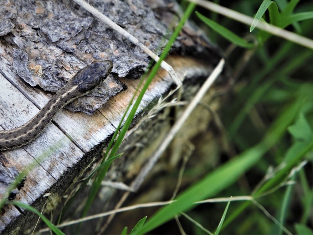 A garter snake on a log