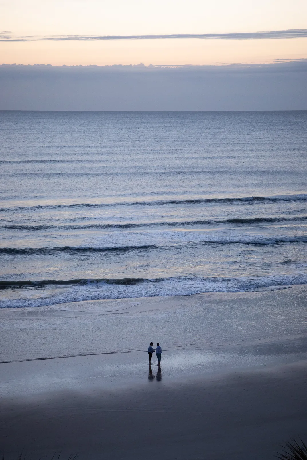 At the edge of dawn, where silence meets the sea, two souls walk side by side — their quiet bond reflecting the timeless tide of life, and the calm journey that lies ahead.