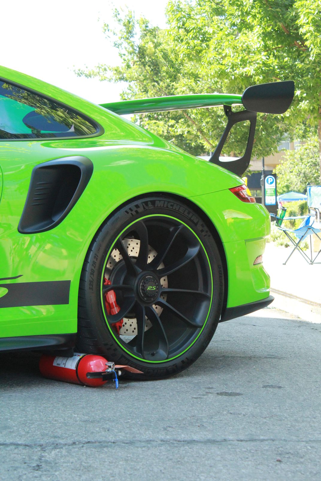 A 911 GT3RS the fastest production track car as of the photo being taken. Participating in a memorial of 9/11 at Des Moines Iowa car meet memorial. This car and many others cars from other countries are sent to this meet to participate in this event.