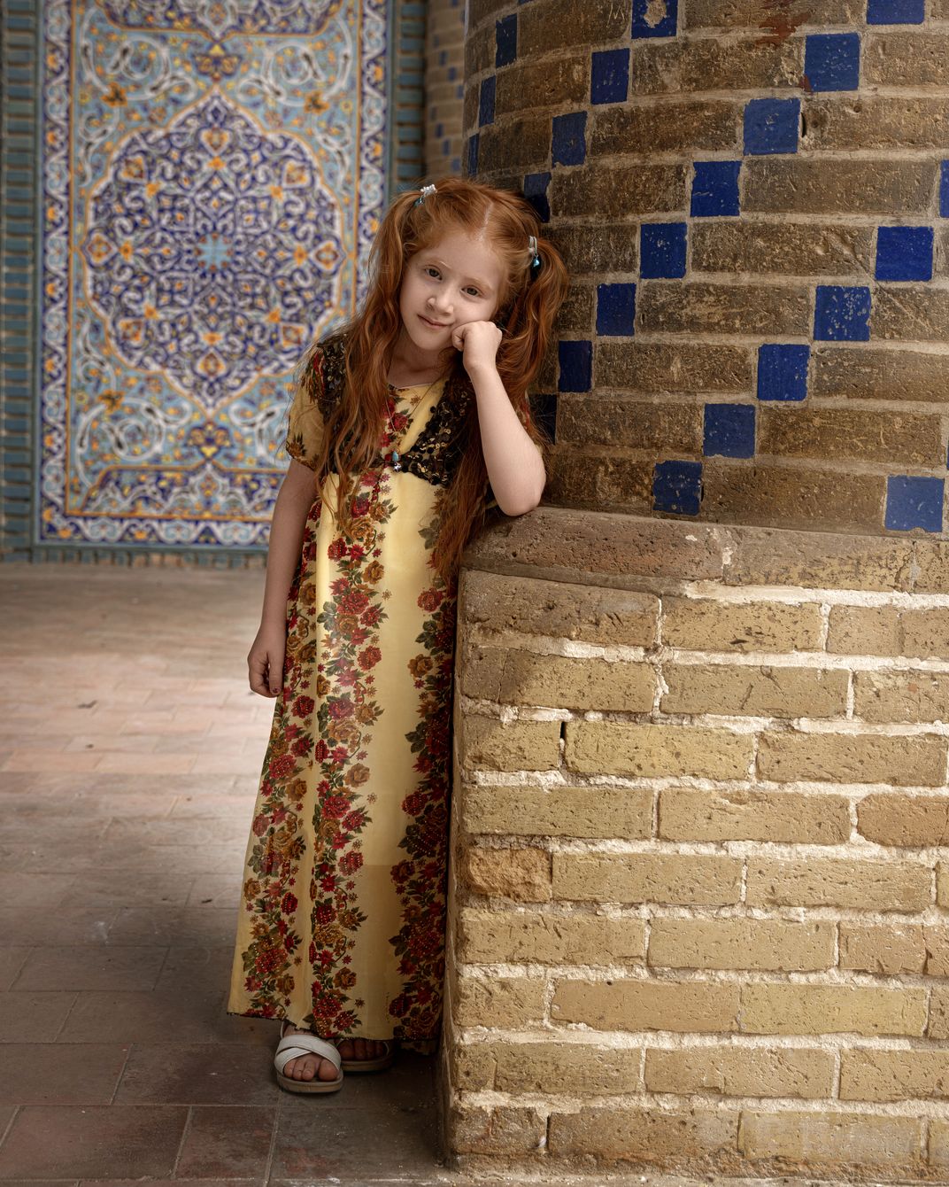 A girl, dressed in the traditional attire of her homeland, striving to preserve the values and customs of her ancestors.