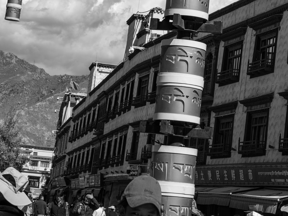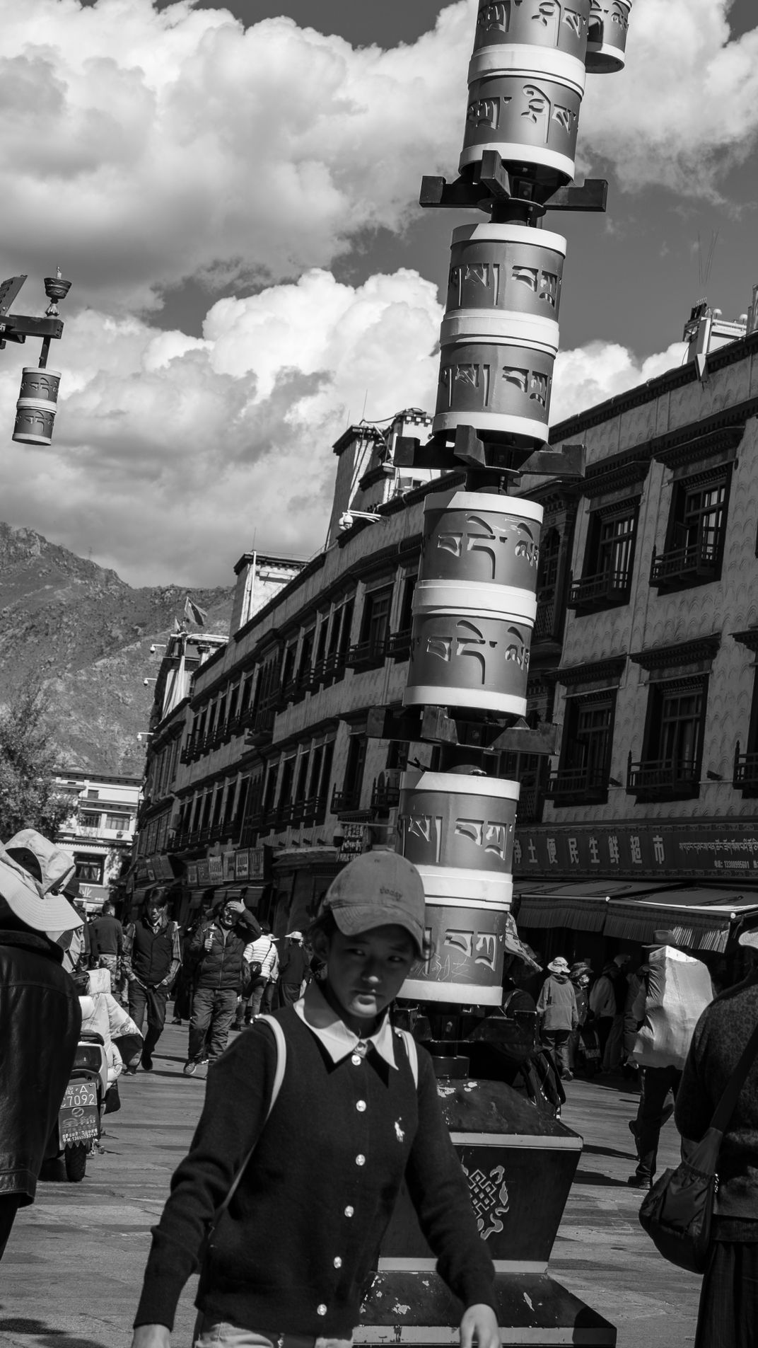 In autumn in Lhasa, a girl is walking on Barkhor Street.