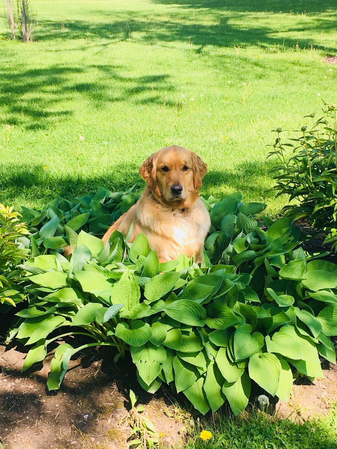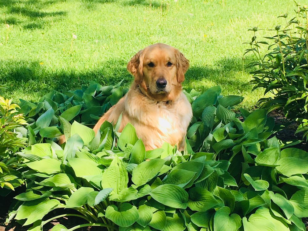 While outside enjoying the beautiful weather in Buffalo, NY and playing outside with our puppies, we looked over to see our 3 year old Golden Retriever- Savannah taking a nice and relaxing break in the flowers. It was such a nice reminder of how beautiful nature can be.
