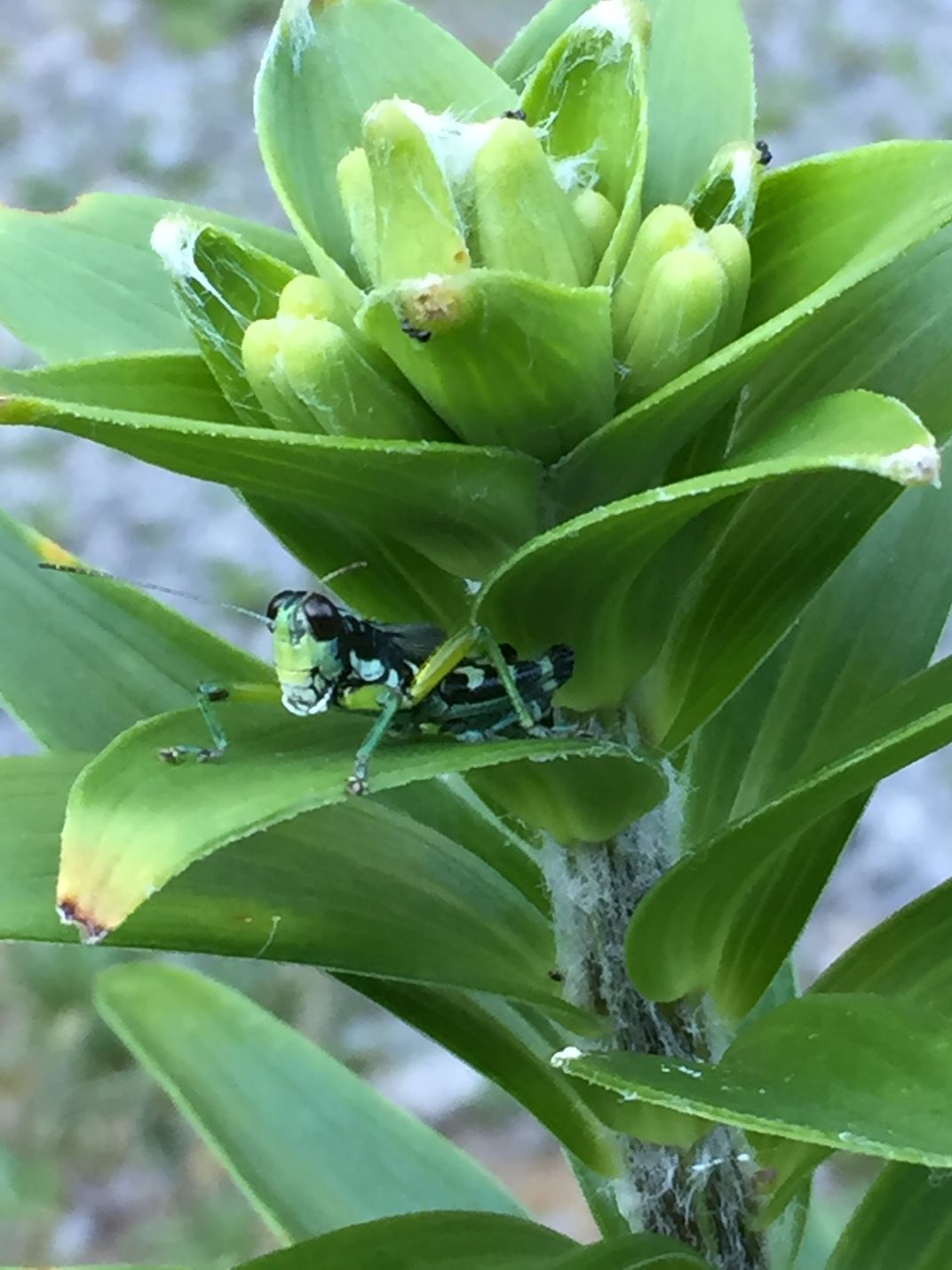 A grasshopper on a lily. He reminded me of a story from childhood.