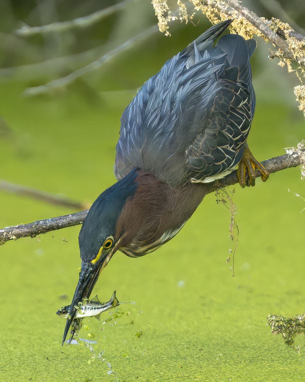 I spotted this Green Heron during my morning walk through the wetlands. I could tell it was about to strike, so I quietly repositioned myself—and managed to capture the exact moment it snatched a fish. One of those rare times when patience and timing line up perfectly.