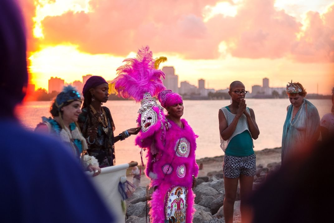 A group of women praying YeMaYa, by the Mississippi river in New Orleans.
