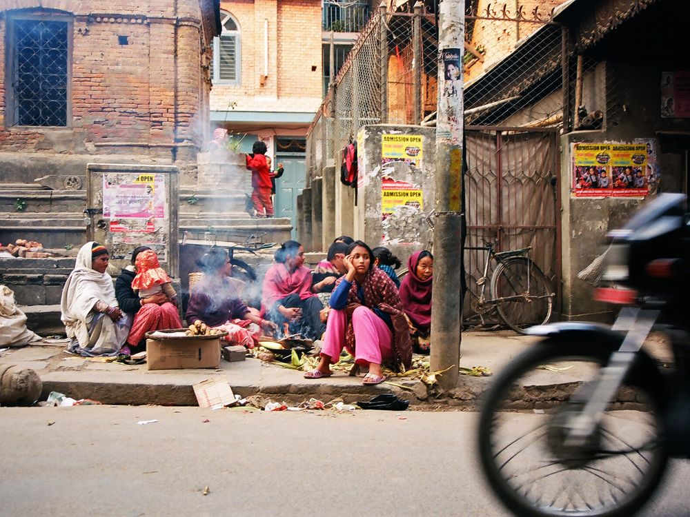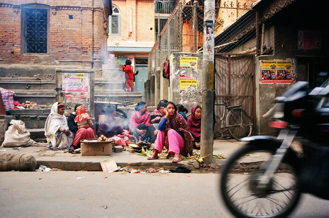 A gypsy girl watches the bustle of a street market in Kathmandu. The gypsies must move their campsite every two weeks in Nepal.