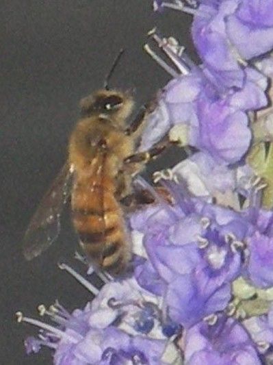 A honeybee on a Vitex bush.