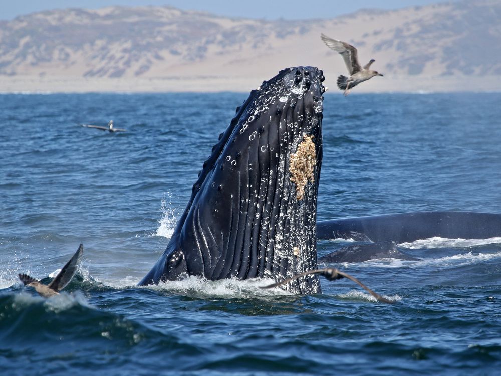 A Humpback Whale is spy-hopping