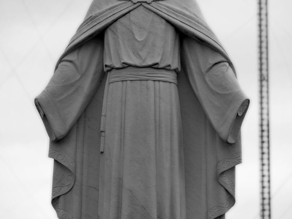 A Jesus statue missing its outstretched hands.