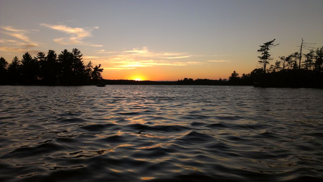 I went out for a paddle on the last evening of vacation to be greeted by an orange and black world. Looking west, everything took on an orange glow.