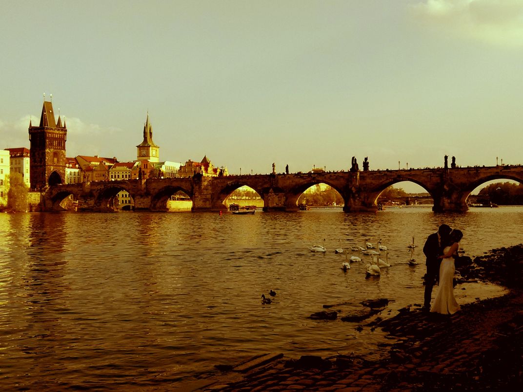Once on my trip to Prague and walking around the Vltava river I noticed this married couple, kissing each other...