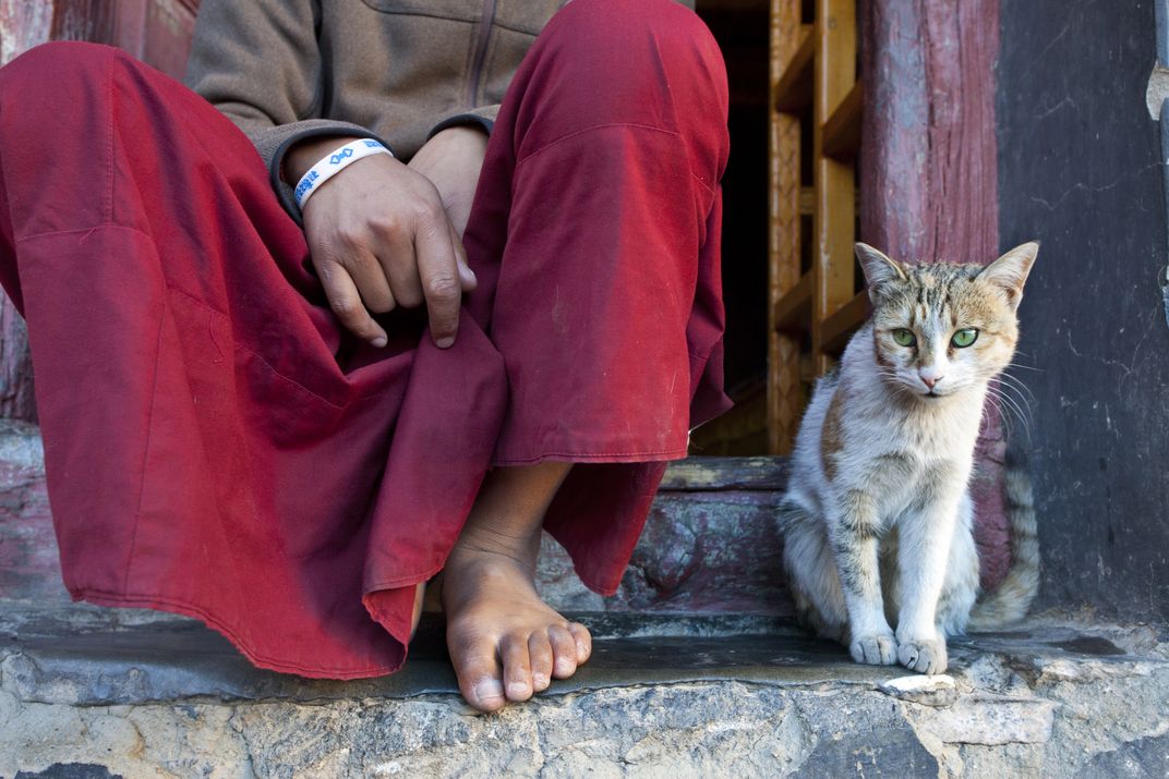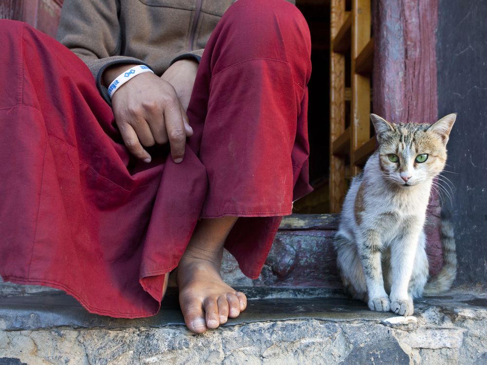 This photograph was taken my recent tour to Leh-Ladakh. I met with Jeemat lama in Shey Palace . Situated 15 km south of Leh shey palace was built in 1655. It was used as a summer retreat by the kings of Ladakh. There is a small Buddhist monastery inside the palace and the lama lives alone their. The only companion is the small cute cat. The monastery is full of serenity & peace.