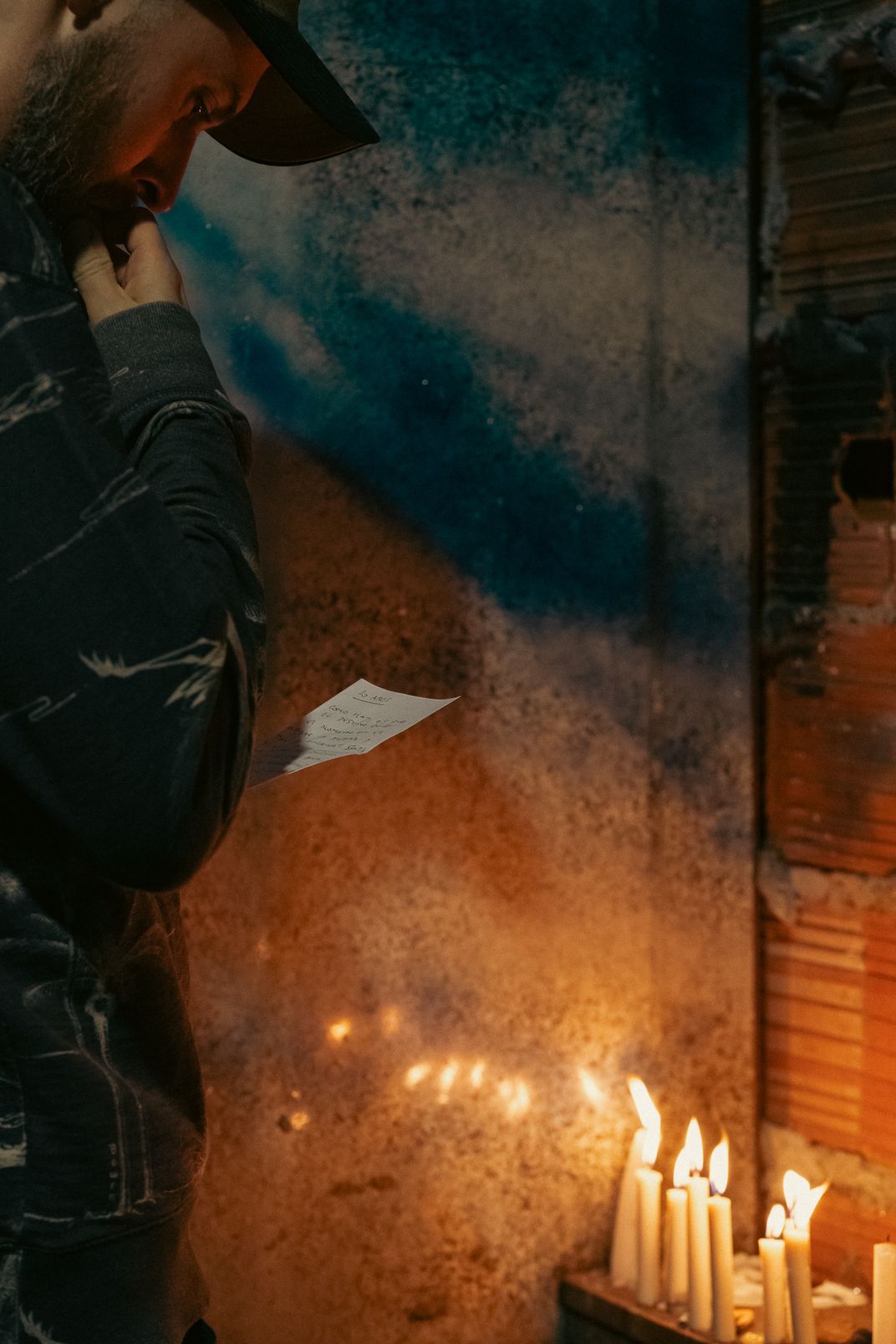 A guy reads a letter for a friend who died at the Cromagnon tragedy in 2004, Buenos Aires.