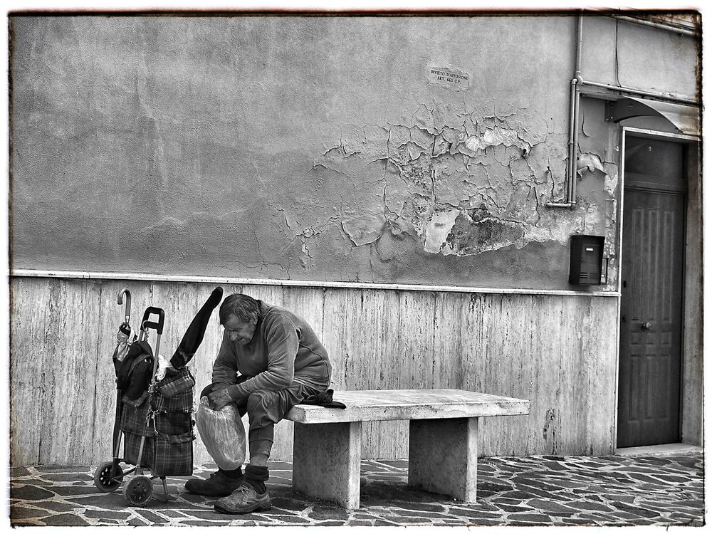 Homeless taking a little rest on his way to nowhere.