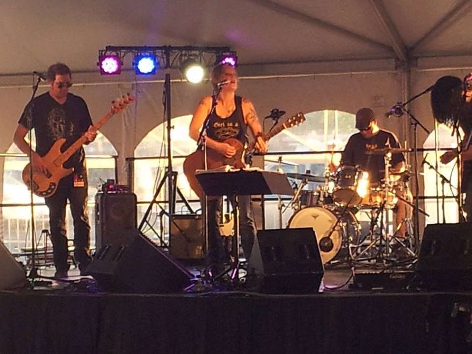 A live band performing at the Guitar Center grand opening